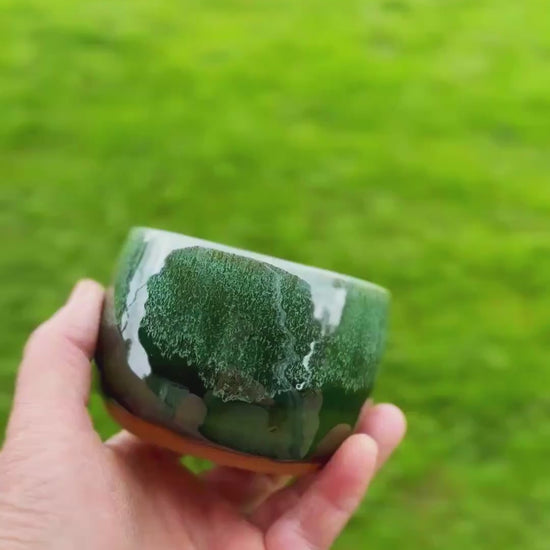 Limited edition Green stoneware coffee bowls. These Coffee Bowls are hand thrown stoneware. Thrown on the potters wheel and then glazed with Ruth’s glazes. These bowls can be comfortably held in one hand or with both hands wrapped around to keep your hands toasty warm on a cold morning. Each coffee bowl holds about 250ml of liquid and is Stoneware fired. The vessels are DW, OVEN & MICROWAVE safe. As they are handmade, each vessel is similar yet they are all unique & have their own quirks. They can be used for all manner of things- not just for serving Coffee!