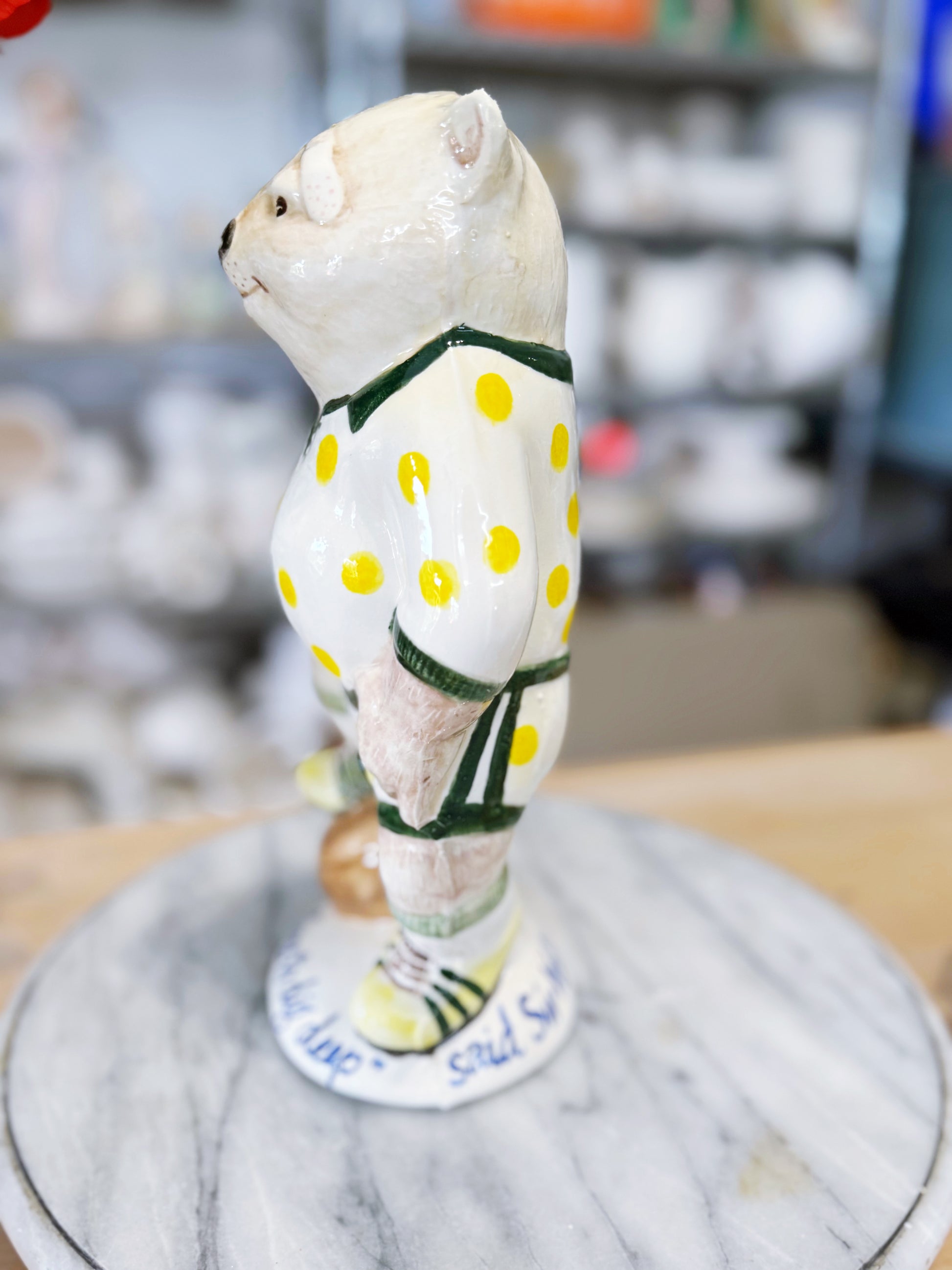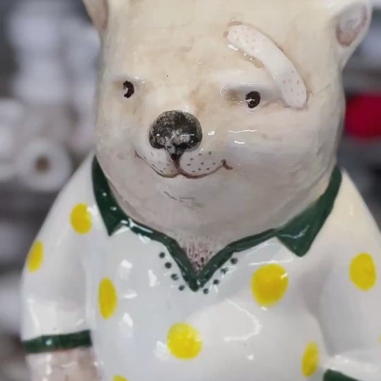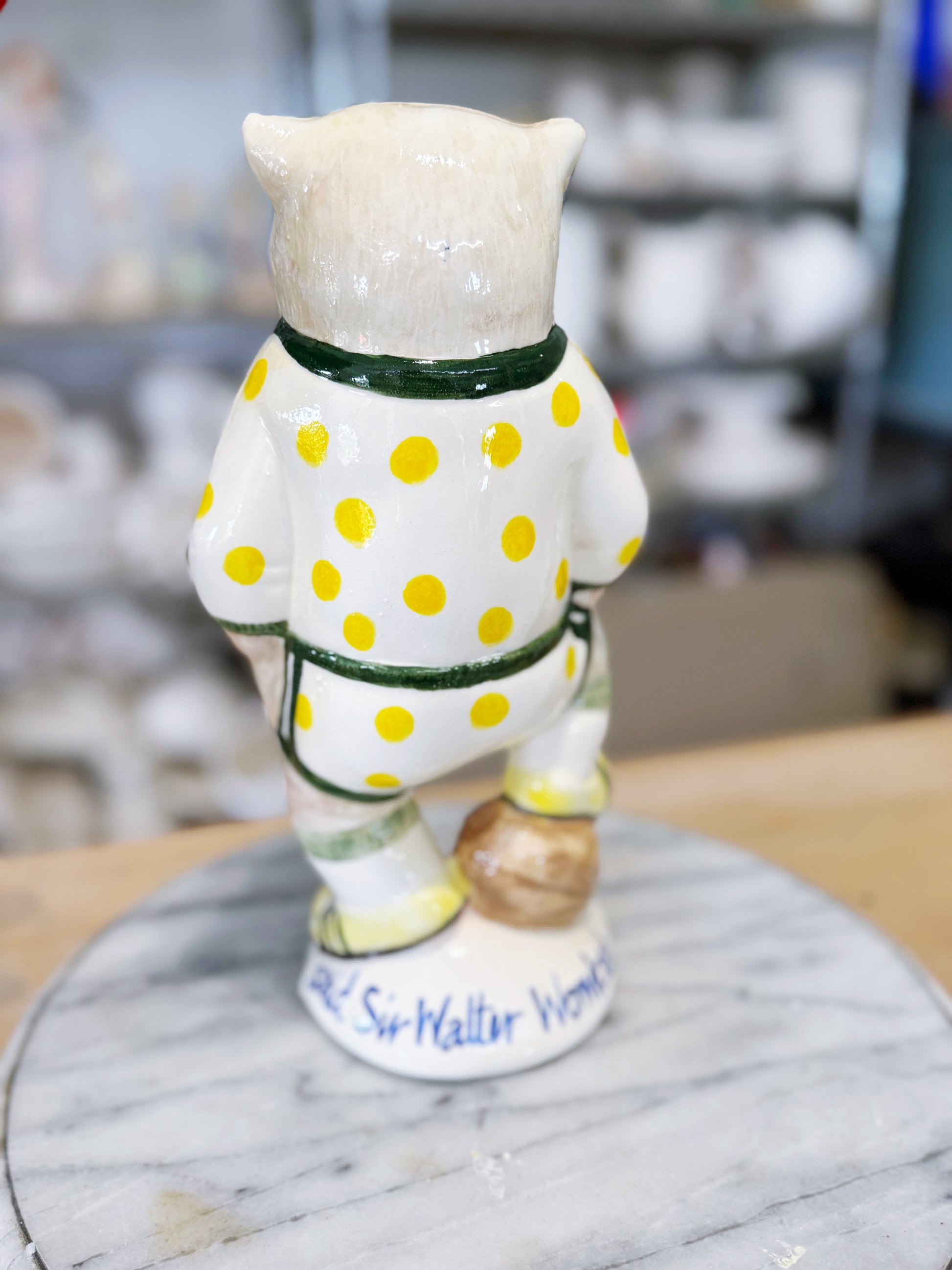All Slipware sculptures are handpainted by Ruth and are unique one-off artworks- your piece will differ slightly than the pictures here as each statue is made individually.All Ruth’s slipware features her signature polka dots somewhere and somehow. This sculptural slipware range is intended to be lighthearted and irreverent and enjoyed for it’s juxtaposition of beauty and bawdy.